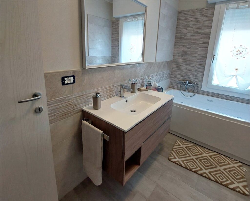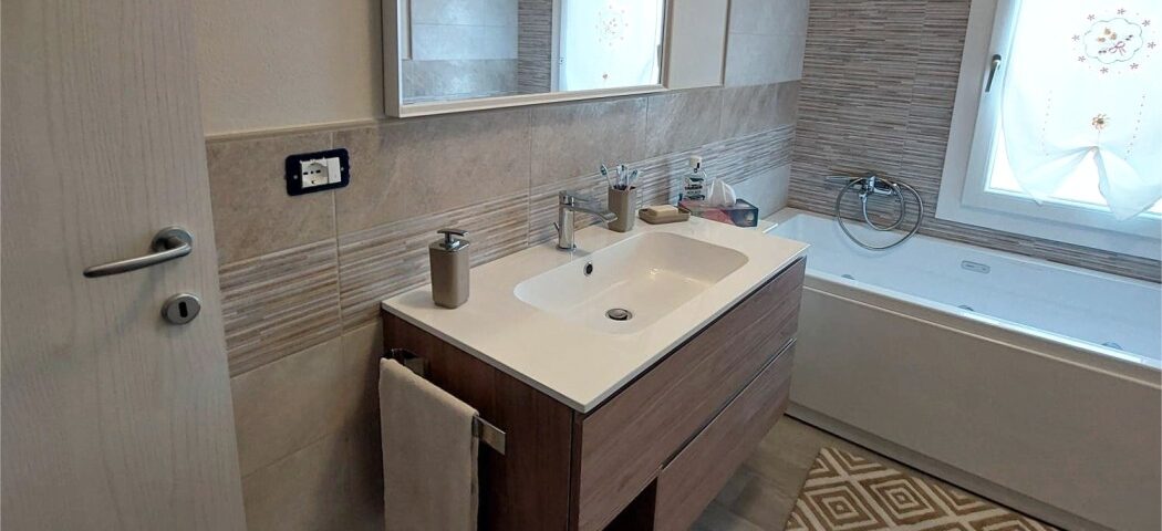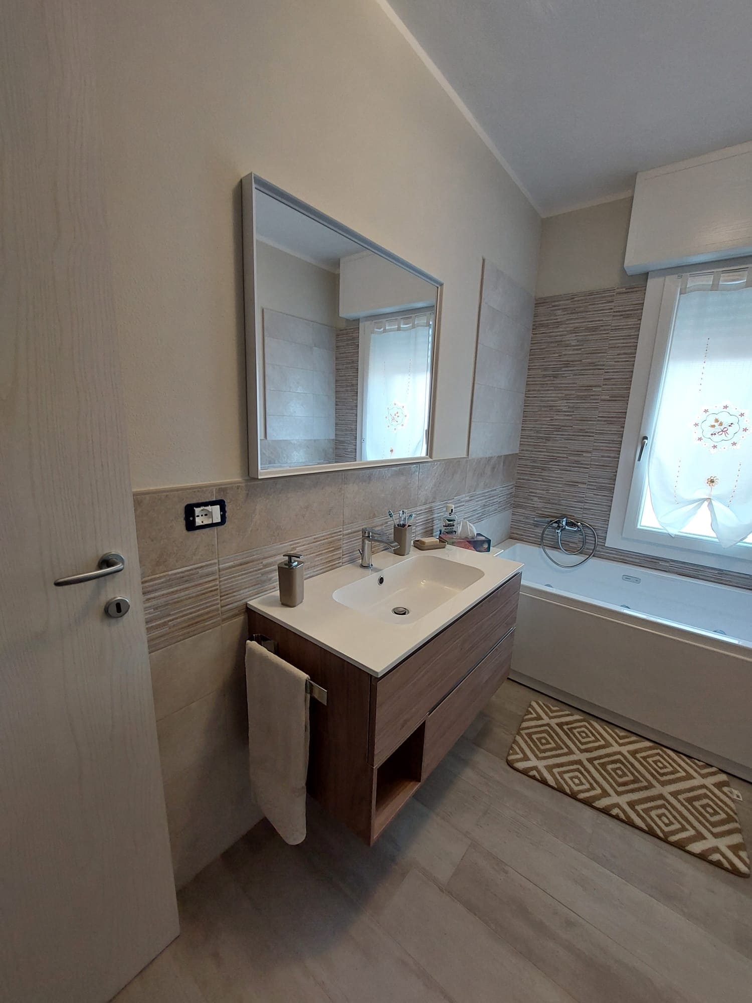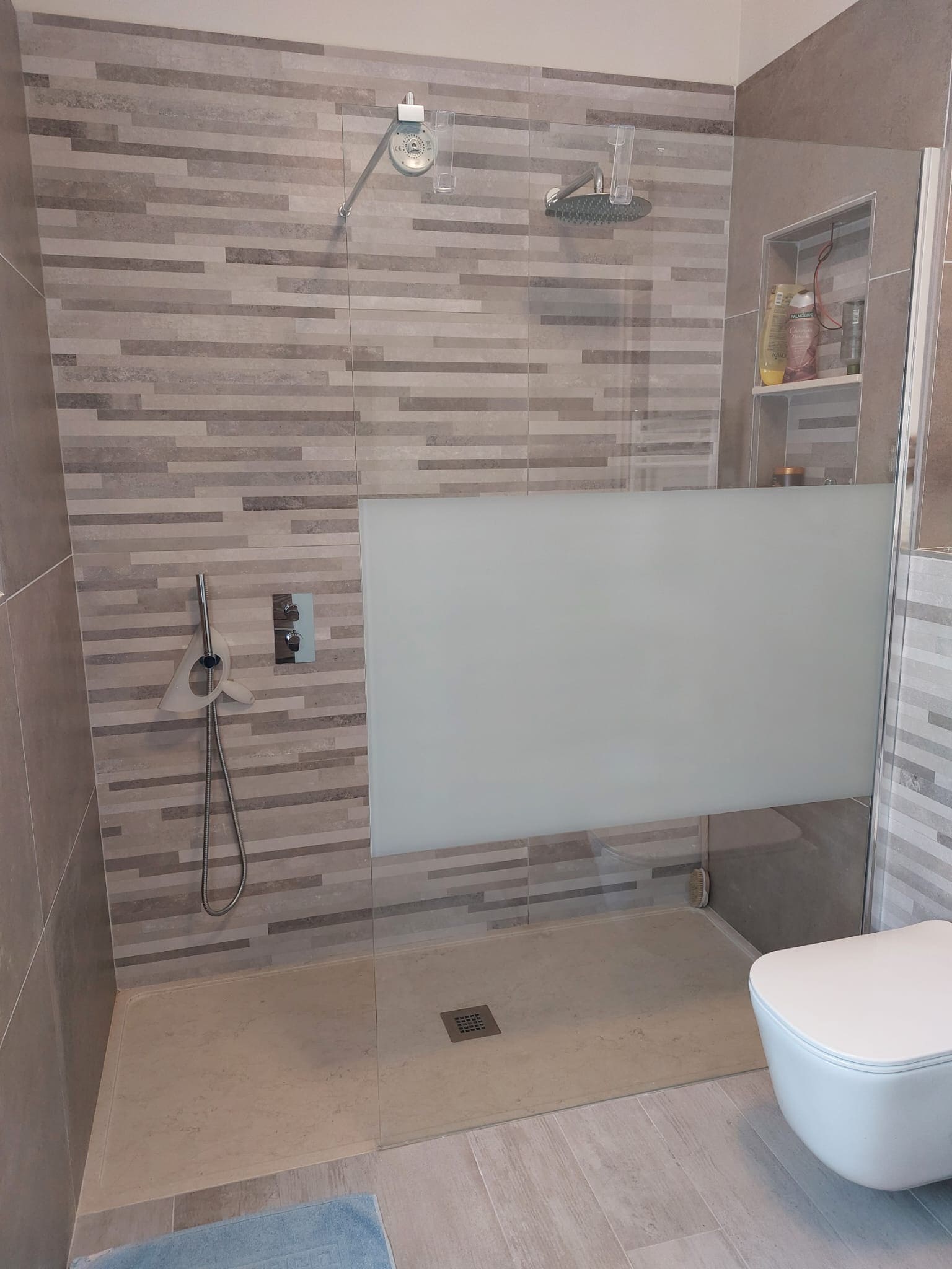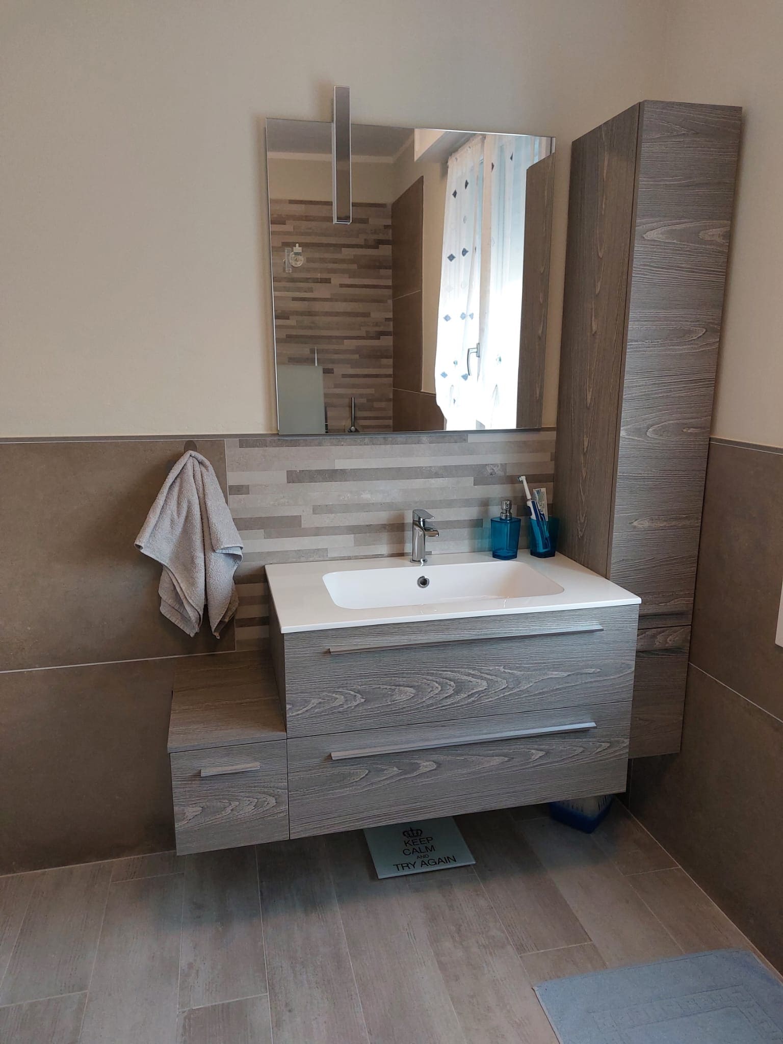 Nei due bagni della casa, l'intervento di Corazza ha riguardato, oltre ai pavimenti,