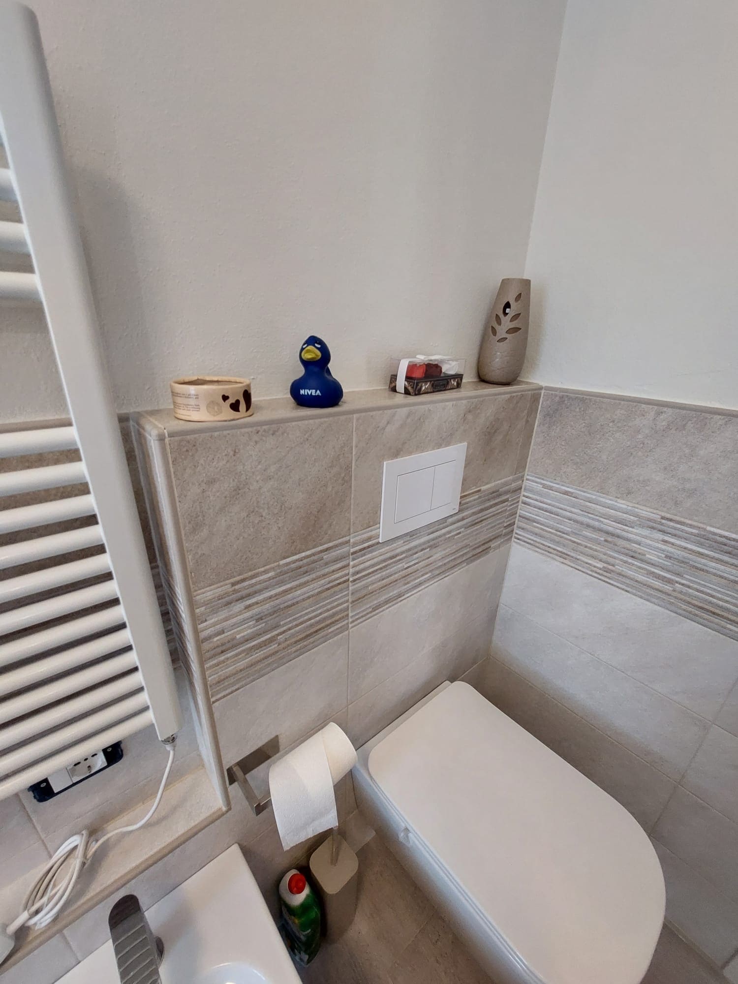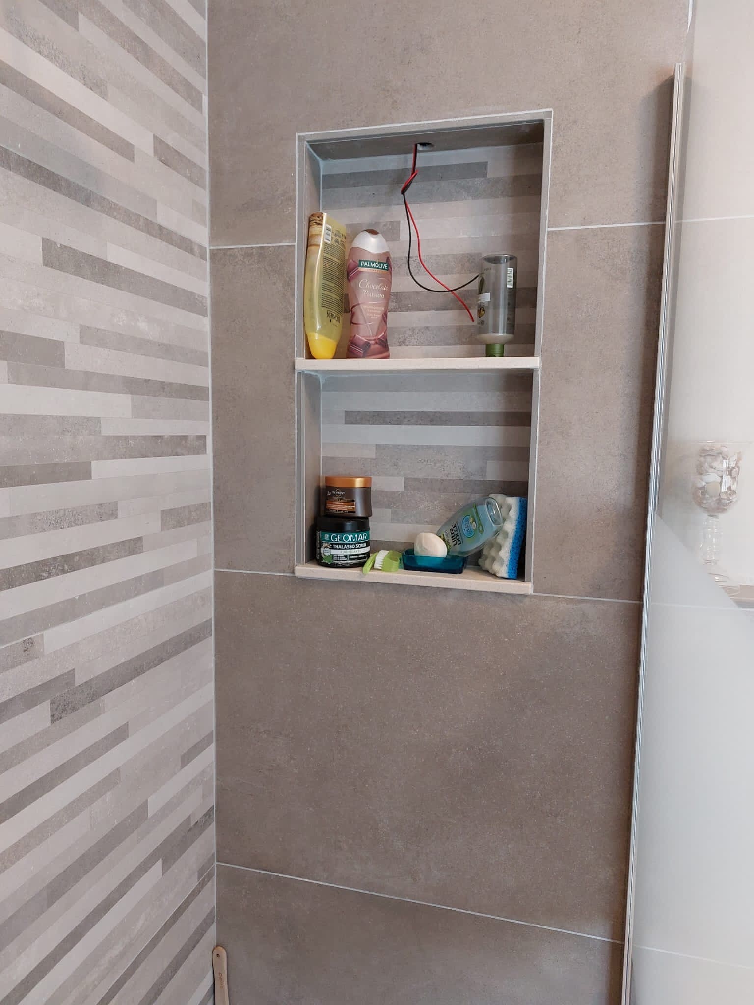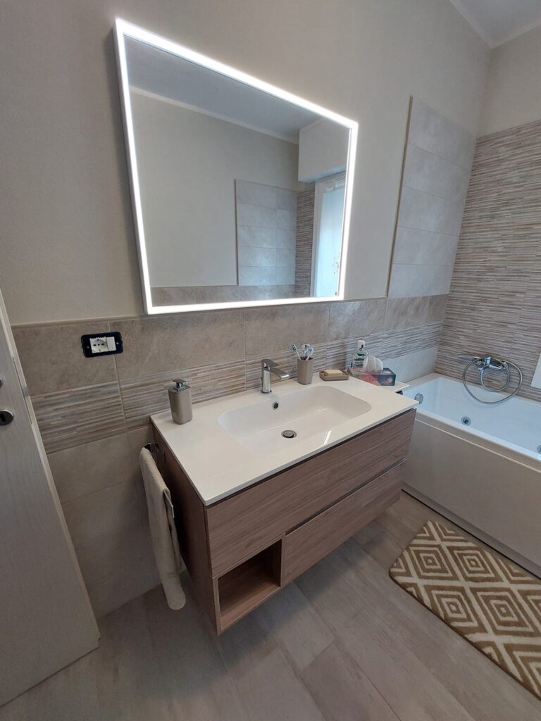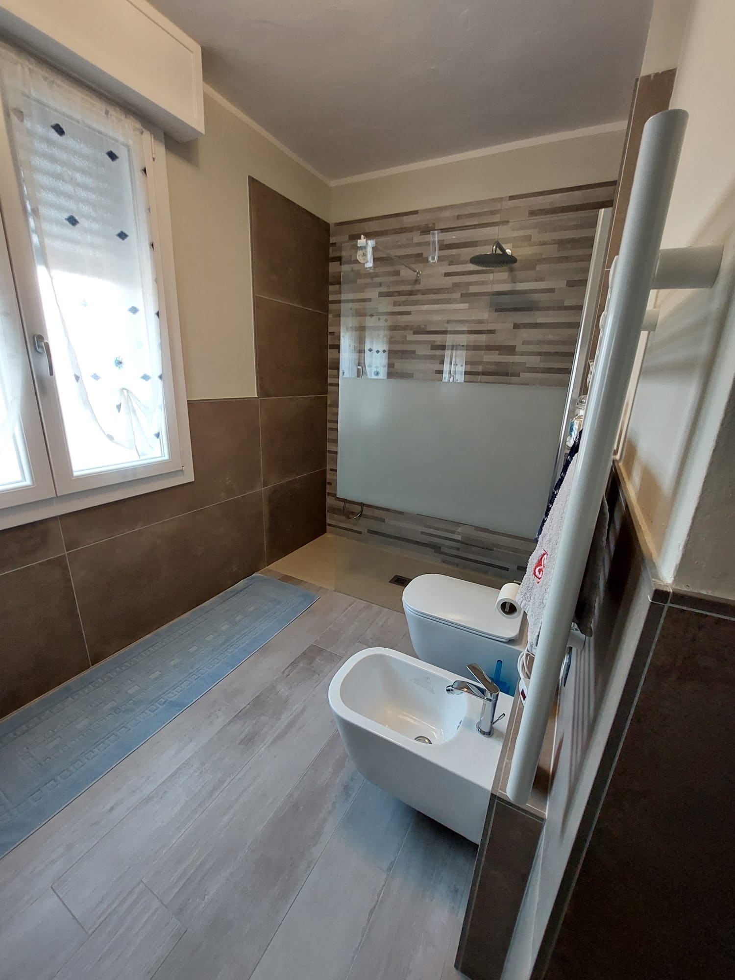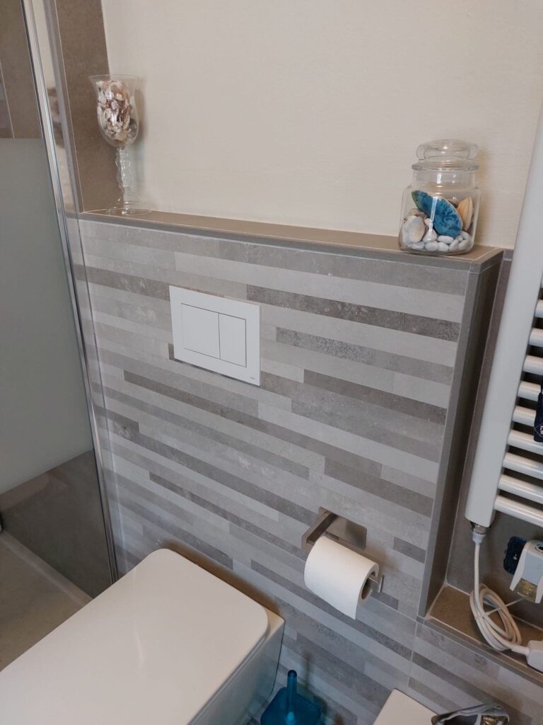 Nei due bagni della casa, l'intervento di Corazza ha riguardato, oltre ai pavimenti,