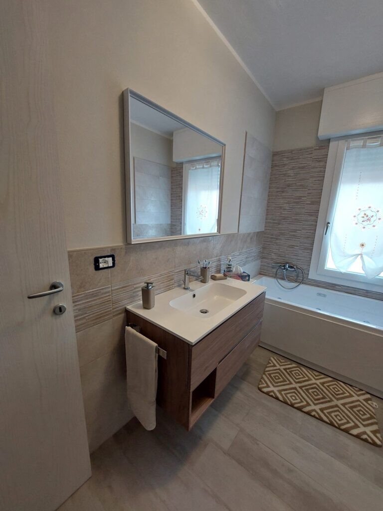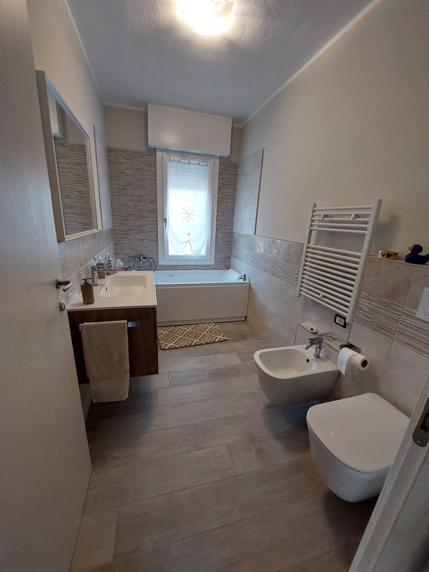 Come accade sempre più spesso, è stato scelto di optare per una pavimentazione uniforme ed uguale in tutta la casa, sia per una questione estetica che di praticità.